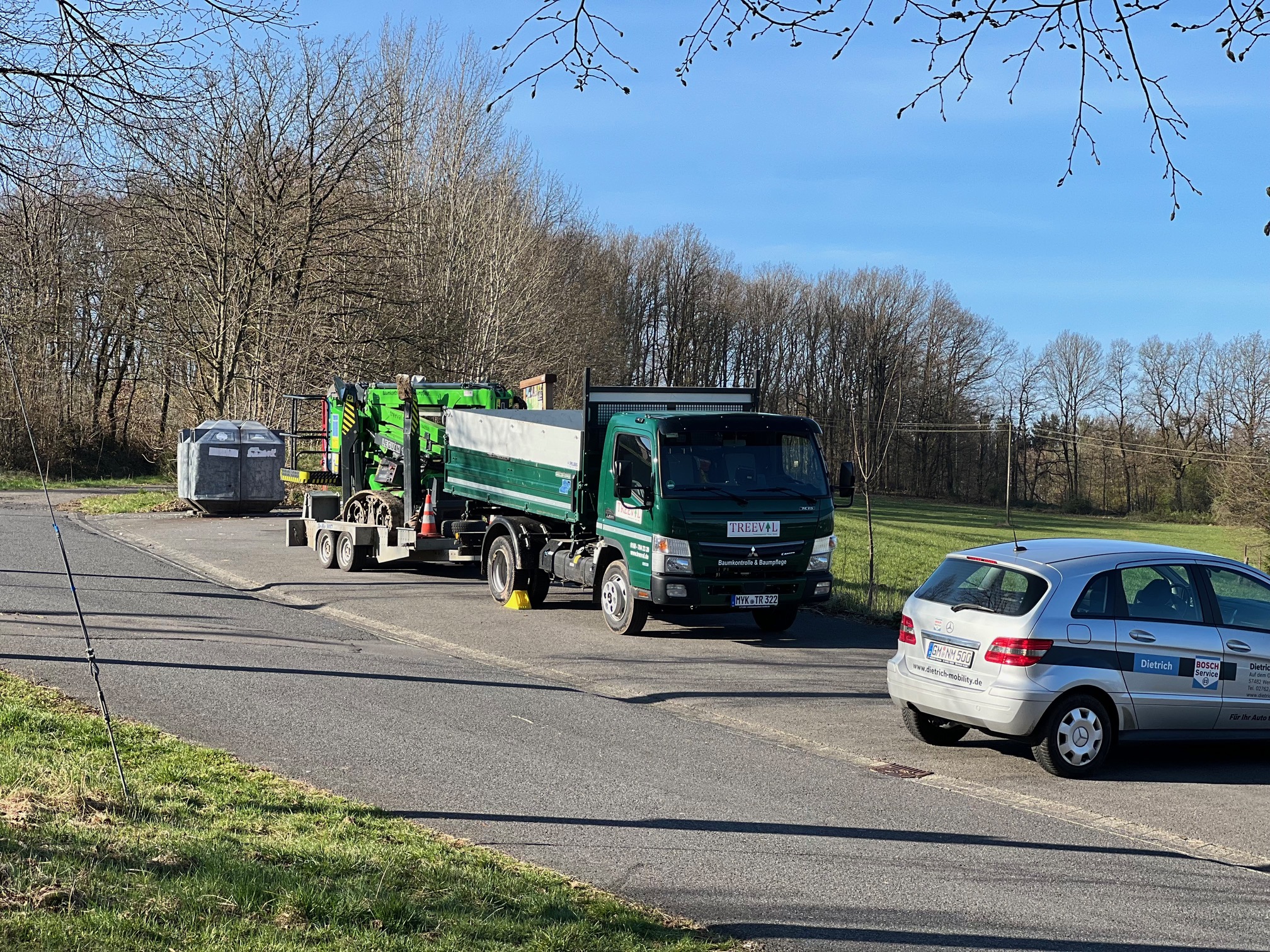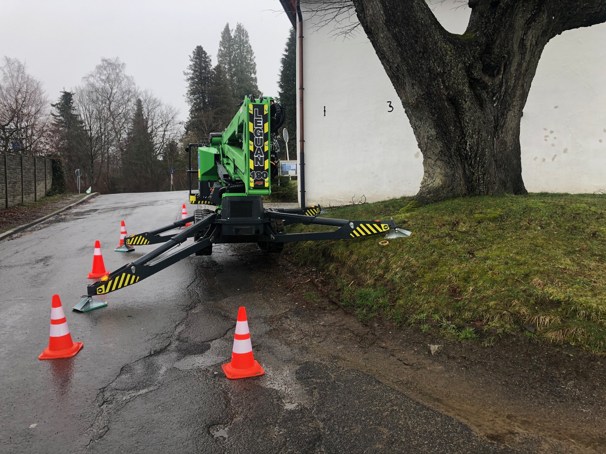 Mit unserer mobilen Spezial-Arbeitsbühne können wir Straßenbäume und auch Bäume an schwer zugänglichen Terrain pflegen.